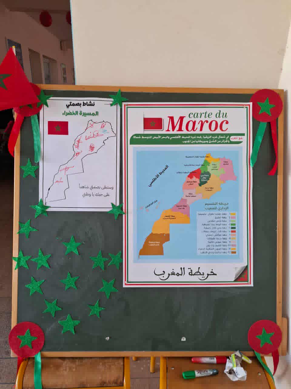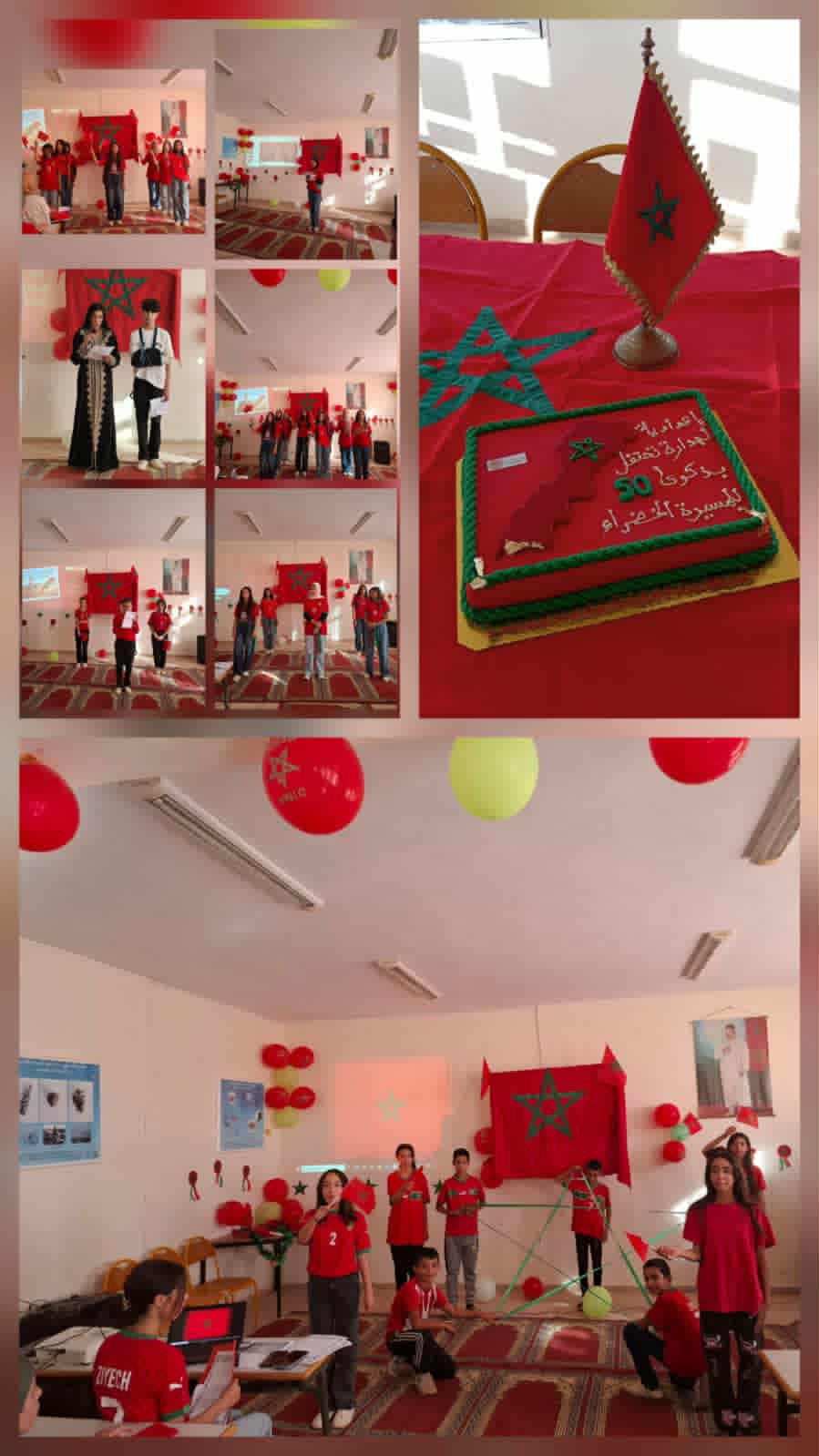 حيث تخلل هذا الاحتفال لحظات رمزية مؤثرة إلى جانب فقرات تربوية وأناشيد وطنية قدمها تلميذات وتلاميذ المؤسسة عبّرت من خلالها عن عمق التشبث بالثوابت الوطنية، وإشاعة قيم المواطنة الصادقة بين الناشئة ،إلى جانب ذلك تم الاستماع إلى الخطاب الملكي السامي لجلالته نصره الله وأيده في 31 أكتوبر 2025 مباشرة بعد القرار الأخير لمجلس الأمن الدولي، الذي أكد فيه من جديد مصداقية مبادرة الحكم الذاتي تحت السيادة المغربية.