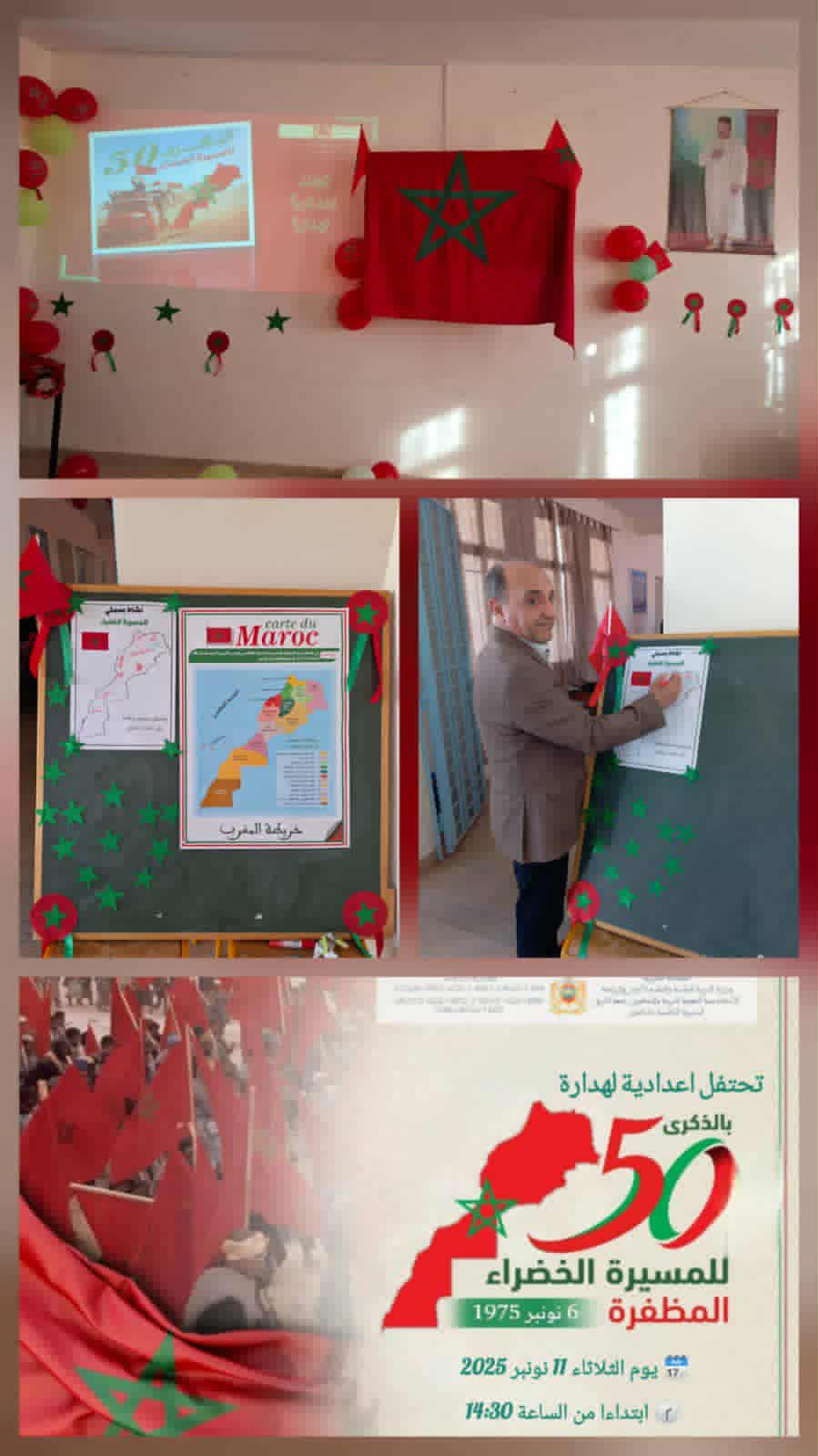 تخليدا للذكرى ال 50 للمسيرة الخضراء المضفرة 6 نونبر1975 و للذكرى ال 70 للاستقلال ، وفي إطار ترسيخ قيم االمواطنة وحب الوطن في نفوس التلميذات والتلاميذ .