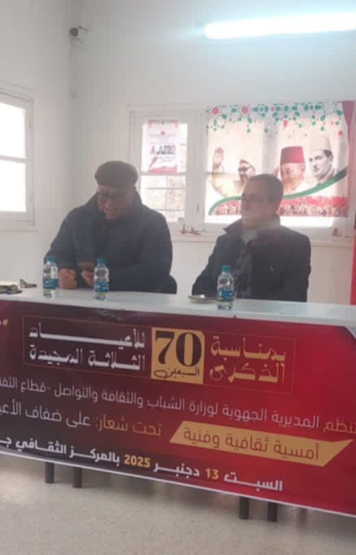 تحت شعار: “على ضفاف الأعياد الثلاثة”، نظمت المديرية الجهوية للثقافة بجهة الشرق، مساء يوم السبت 13 دجنبر 2025، بالمركز الثقافي وسط مدينة جرادة، نشاطا ثقافيا وفنيا متميزا، عرف قراءة وتقديم رواية “فدان الجمل” للمبدع الراقي ذ. عبد الرحيم كلموني، بحضور ممثل المديرية الجهوية للثقافة الدكتور ميمون راكب ومجموعة من المبدعين قدموا من وجدة وبركان وأحفير، إلى جانب مبدعي مدينة جرادة المكافحة، وعدد من المثقفين وعشاق فن السرد.