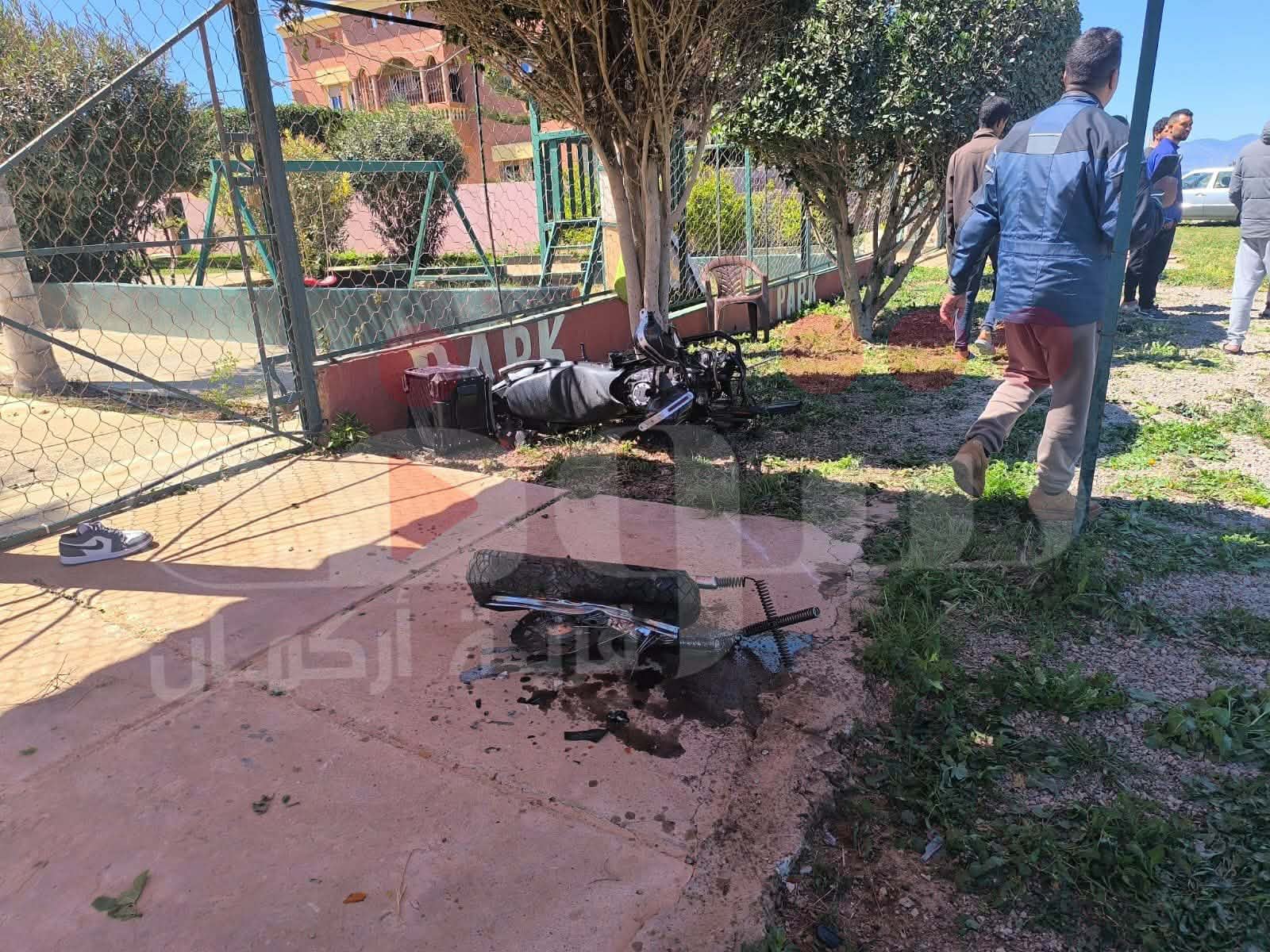 بعد اصطدام عنيف بين سيارة من نوع 190 ودراجة نارية كان على متنها شابين.