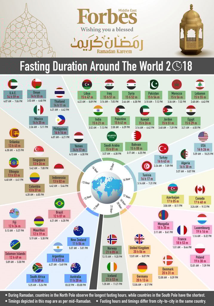 و كشفت “فوربس الشرق الأوسط”، أن متوسط عدد ساعات صيام المغاربة سيبلغ هذا العام 15 ساعة و56 دقيقة.