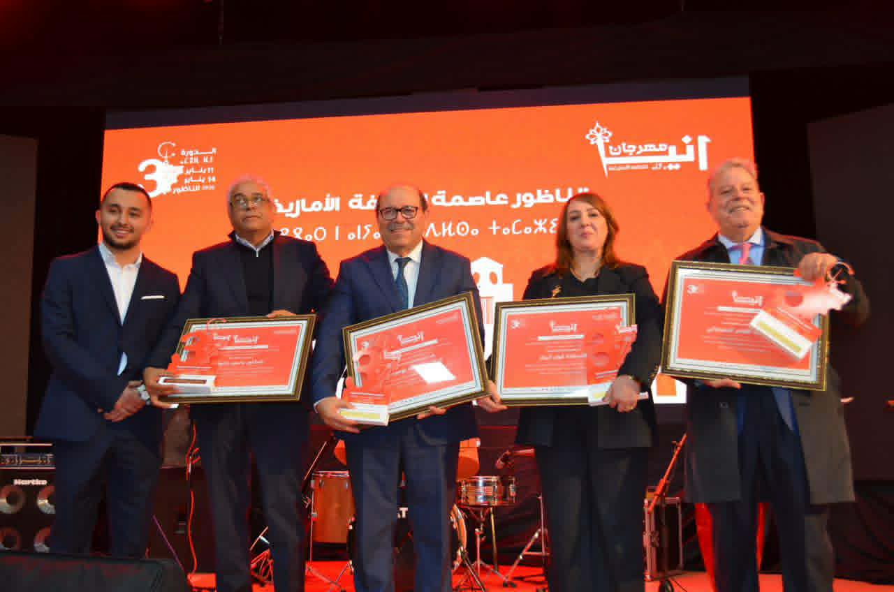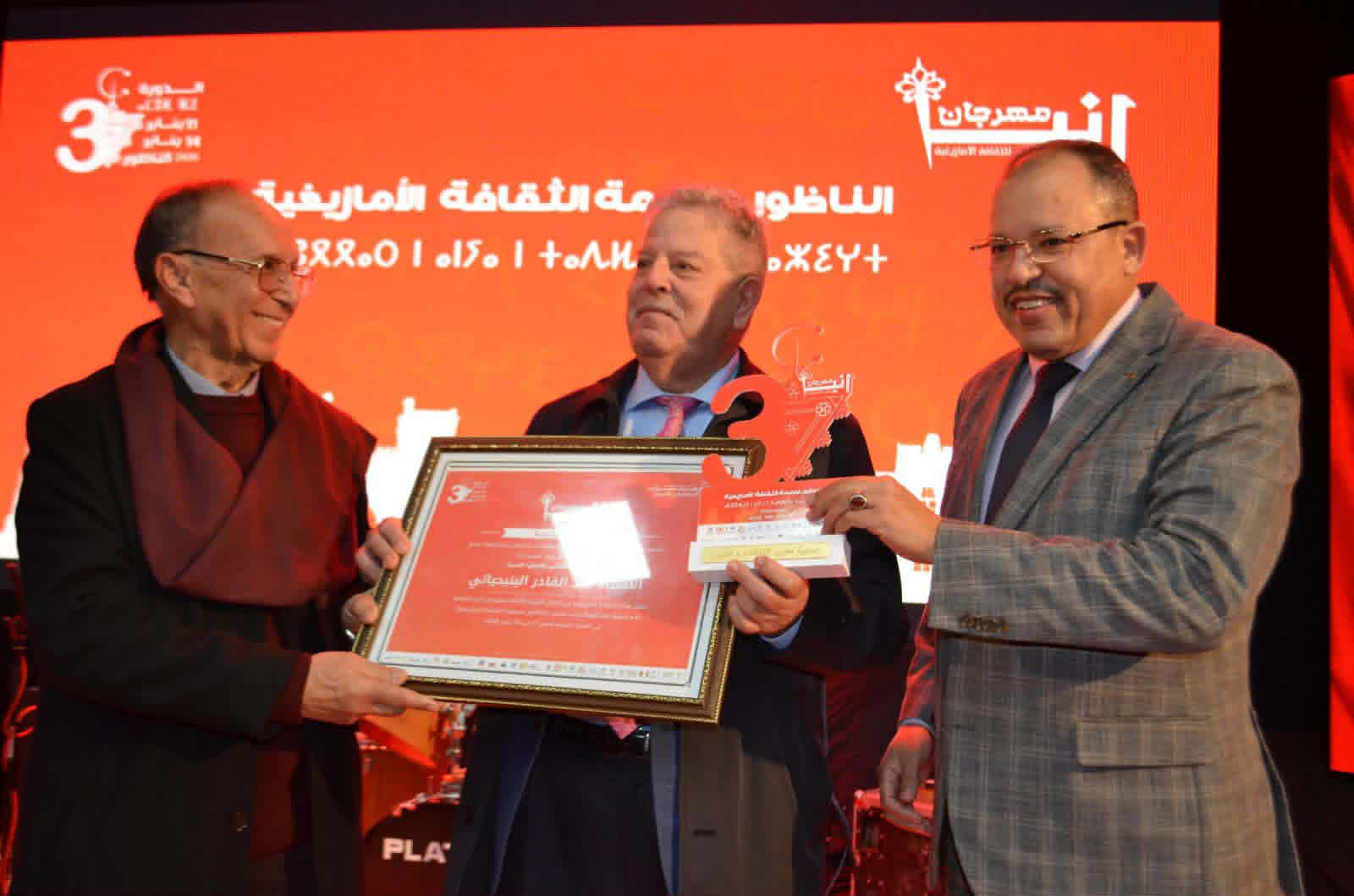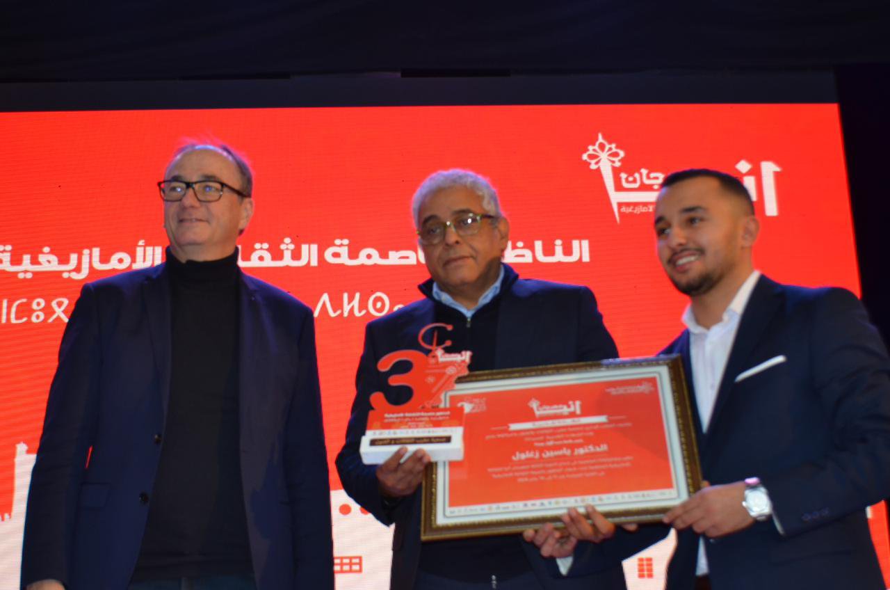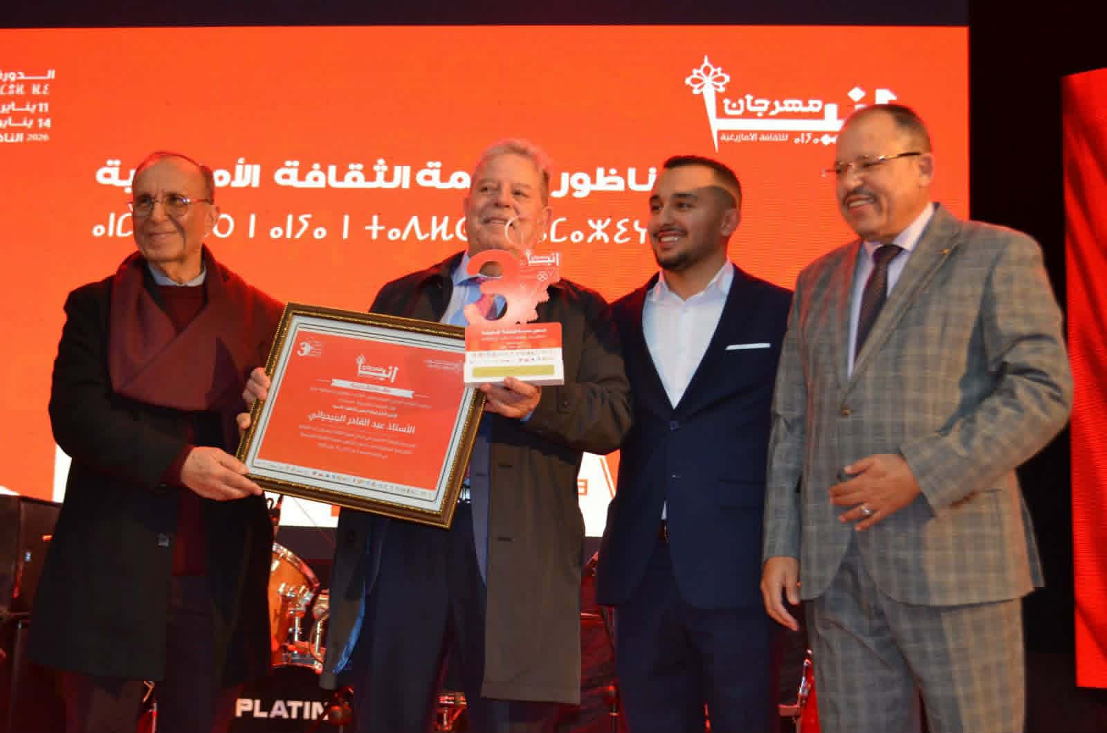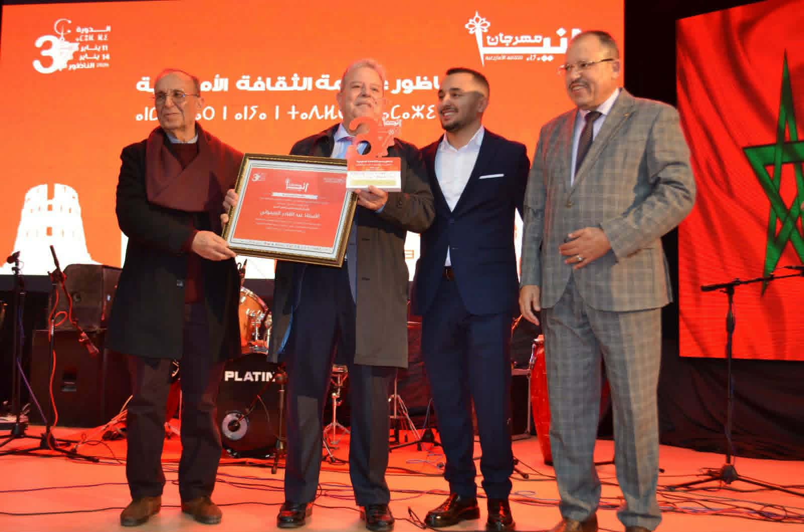 وعرفت هذه الأمسية الافتتاحية تكريم ثلة من الشخصيات البارزة والفاعلة في مجالات متعددة، اعترافًا بإسهاماتها العلمية والمهنية والثقافية، ويتعلق الأمر بكل من الدكتور عبد الله بوصوف، الأمين العام لمجلس الجالية المغربية بالخارج، والدكتور ياسين زغلول، رئيس جامعة محمد الأول بوجدة، والسيد عبد القادر بنحياتي، النقيب السابق لهيئة المحامين بالناظور والحسيمة، إلى جانب الإعلامية كوثر أزيرار، بالقناة الثامنة الأمازيغية “تمازيغت”، في لحظات وفاء وتقدير لمسارات متميزة طبعتها الجدية والعطاء.