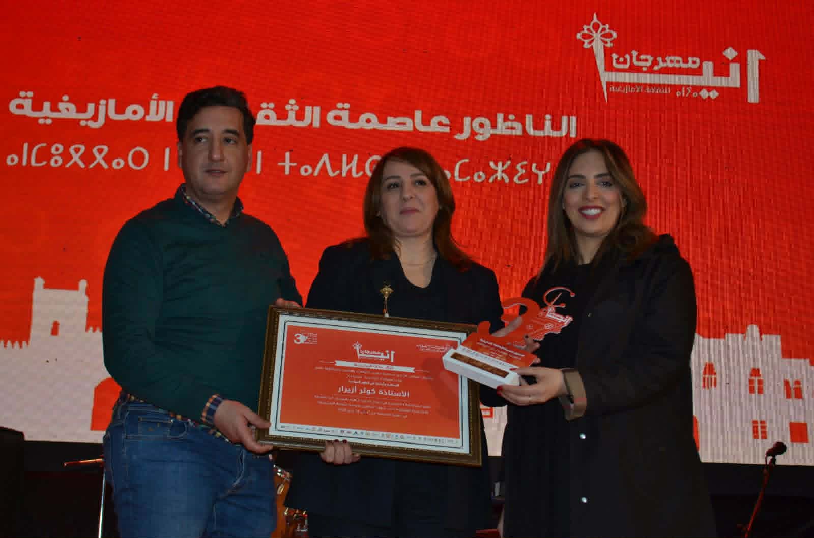 وفي السياق ذاته، حظيت الإعلامية كوثر أزيرار بتكريم مستحق اعترافًا بعطاءاتها وإسهاماتها الوازنة في خدمة الإعلام الأمازيغي، في مبادرة تترجم قيمة الكلمة الملتزمة ودور الإعلام في صون الهوية والذاكرة الجماعية، وتعزيز حضور اللغة والثقافة الأمازيغيتين في المشهد السمعي البصري الوطني.