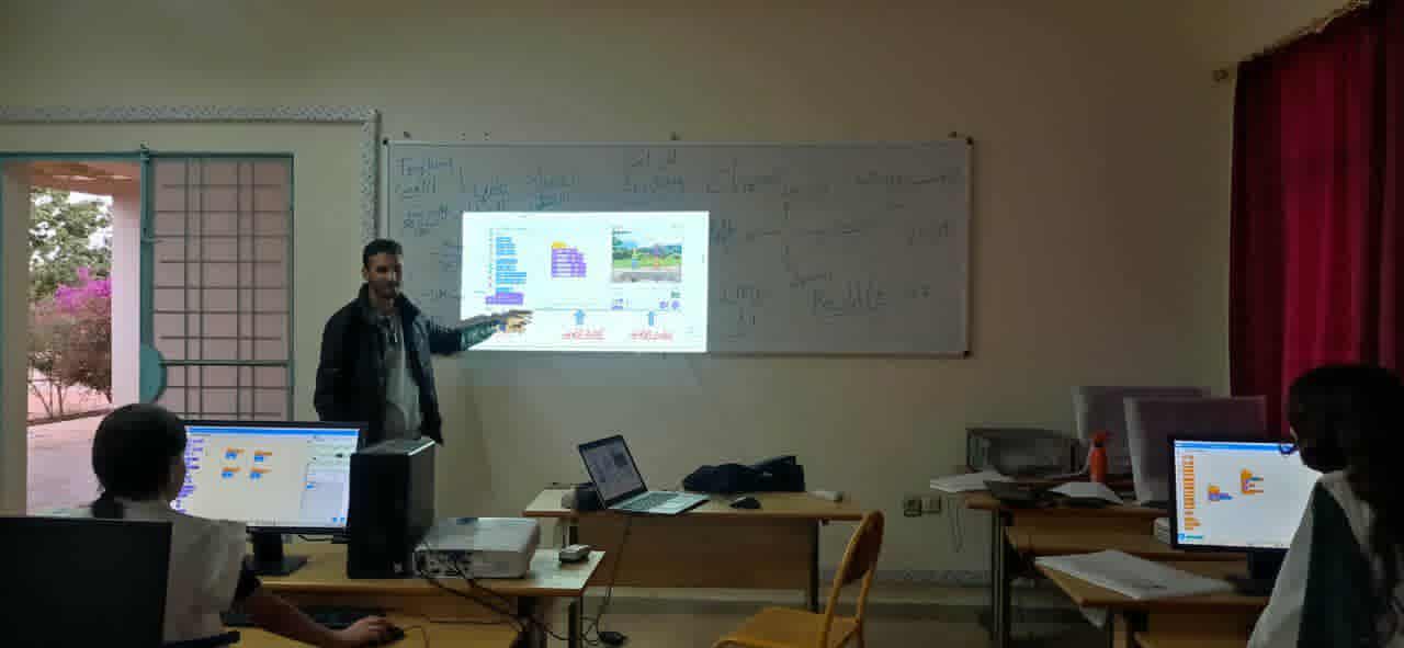 و التي ستستمر خلال نفس الأيام ووفق البرمجة المعتمدة، قصد مواكبة تقدم المتعلمين ودعم مكتسباتهم.. وقد شملت هذه الحصص مجموعة من الورشات التربوية التي تم خلالها: التعرف على برنامج Scratch وشرح مكوّناته الأساسية. تبسيط مفاهيم البرمجة بالكتل بطريقة ممتعة وتشاركية. تدريب التلاميذ على إنشاء مشاريع برمجية أولية وتحريك الشخصيات والتحكم في الأحداث.