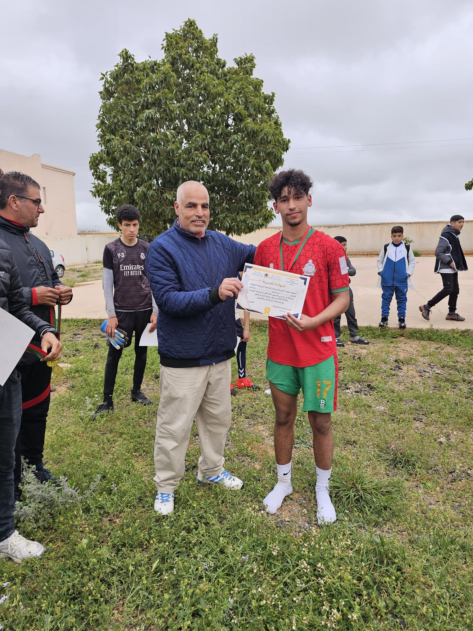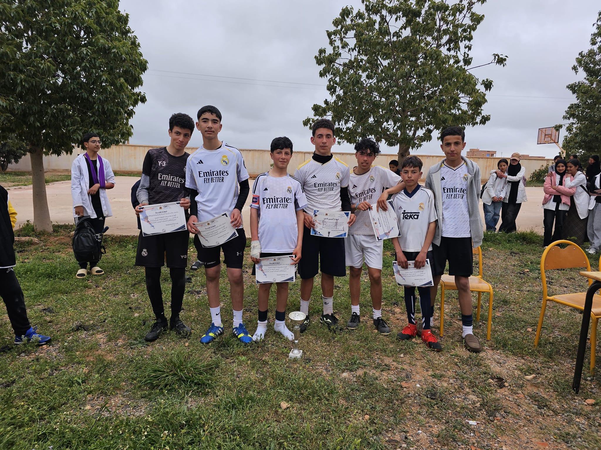 ( الدوري المدرسي المحلي) ، وذلك تحت شعار الروح الرياضية والتحدي والتي جمعت الفريقين المتأهلين. وقد شهدت اطوار المباراة النهائية منافسة قوية بين الفريقين في جو مفعم بالنشاط والفرح واختتمت المقابلة بحفل توزيع الجوائز و الشواهد التقديرية و الميداليات على الفريق الفائز بالمركز الأول والثاني وذلك بحضور كل من رئيس المؤسسة السيد ابراهيم فكيروج والحارس العام للخارجية السيد علي زيتوني والسيد نور الدين زرهون رئيس جمعية مستقبل لهدارة الرياضية و الأطر الإدارية والتربوية وكل العاملين بالمؤسسة .