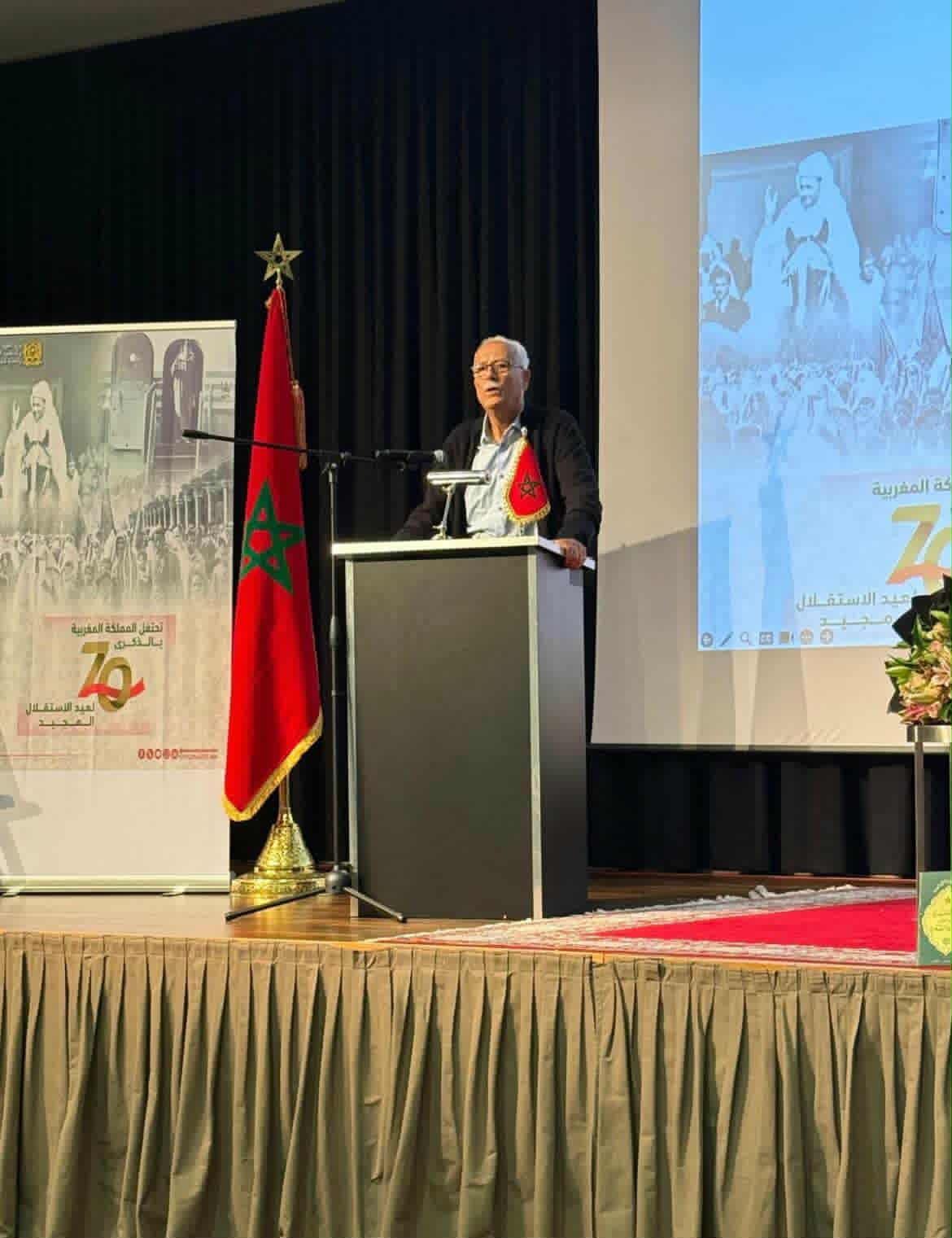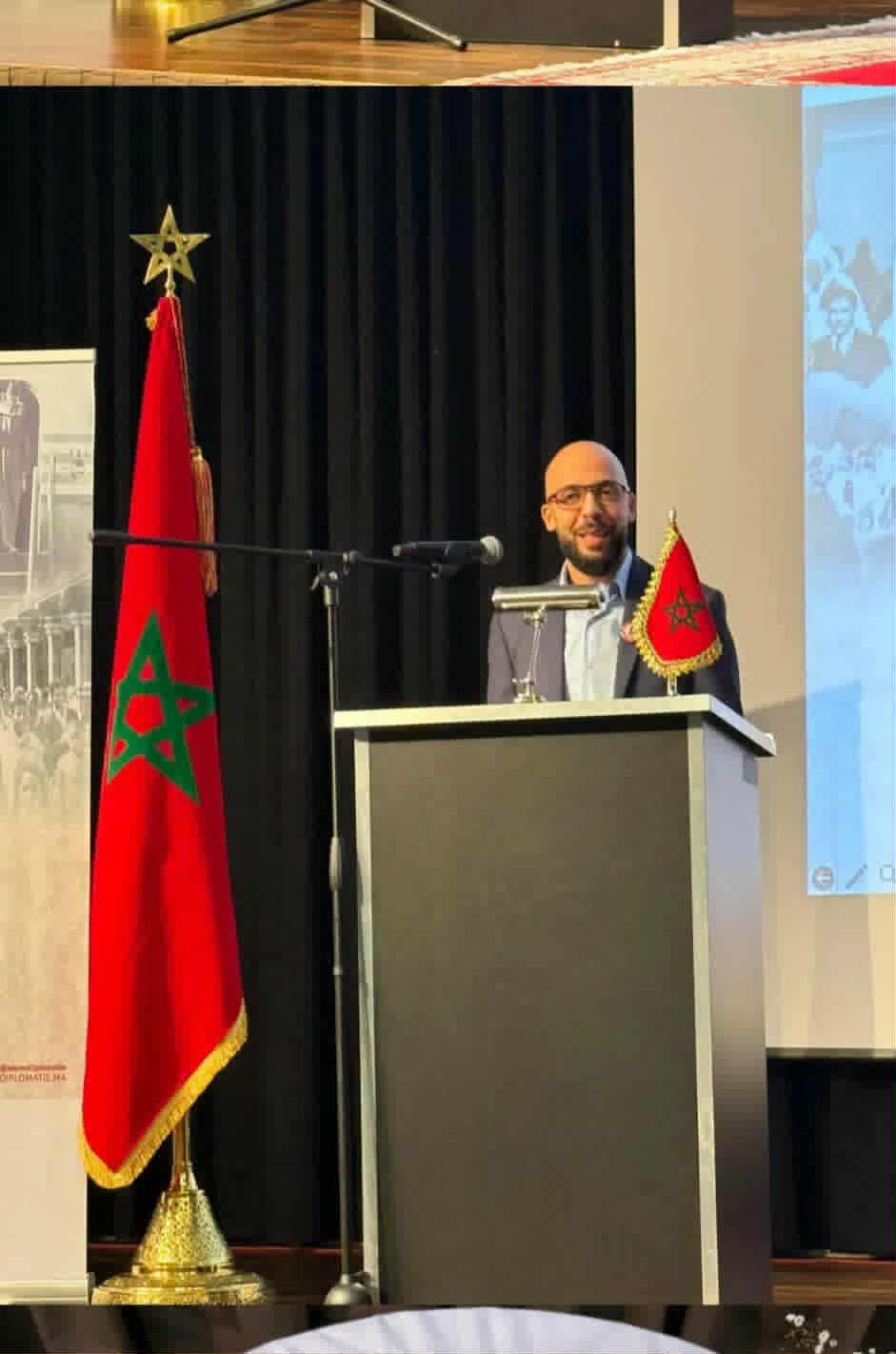 كما أبرز ضرورة تبليغ هذه الحقائق التاريخية للآخرين بلغاتهم داخل المجتمعات الأوروبية، وتربية الأجيال الصاعدة على الوطنية الحقيقية المبنية على خدمة الإنسان والوطن دون انتظار المقابل ، قبل ختام كلمته أتحف فيها الحضور بقصيدة زجلية جميلة باللغة الأمازيغية الريفية، عبّر من خلالها عن مشاعر الانتماء والحب للوطن.