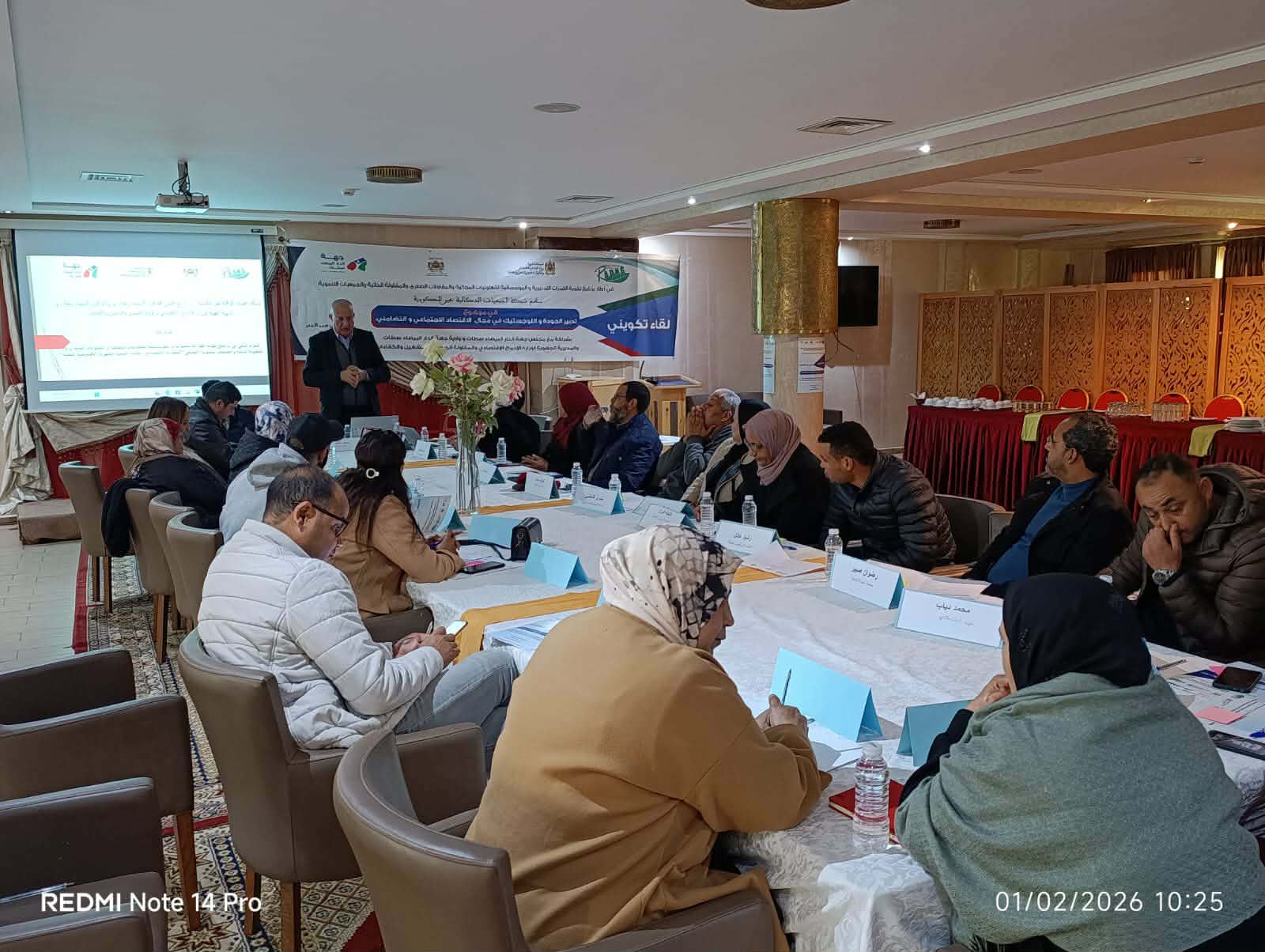 . وقد خُصص اليوم الأول، السبت 31 يناير 2026، لتنظيم ورشة تشاورية لفائدة منسقي الأقاليم، شكلت محطة أساسية لتعزيز المقاربة التشاركية وتكريس التنسيق المحلي والجهوي. وتم خلال هذه الورشة التذكير بمنهجية الاشتغال المعتمدة برسم سنة 2026، وتحديد مراحل الإعداد للدورات التكوينية المقبلة، إلى جانب مناقشة الجوانب التنظيمية واللوجستية، واقتراح أماكن وتواريخ الأنشطة المقبلة، فضلاً عن تقديم معطيات حول عدد المستفيدين المسجلين بكل إقليم. أما اليوم الثاني، الأحد 1 فبراير 2026، فقد خُصص للقاء التكويني، الذي عرف مشاركة وازنة لممثلي التعاونيات والجمعيات التنموية والمقاولات الصغرى والمقاولين الذاتيين. وتم خلاله تقديم الإطار العام وأهداف التكوين، مع التركيز على الدور المحوري للتكوين في تجويد الممارسات التدبيرية وتحسين الأداء الاقتصادي والتنظيمي للمشاريع.