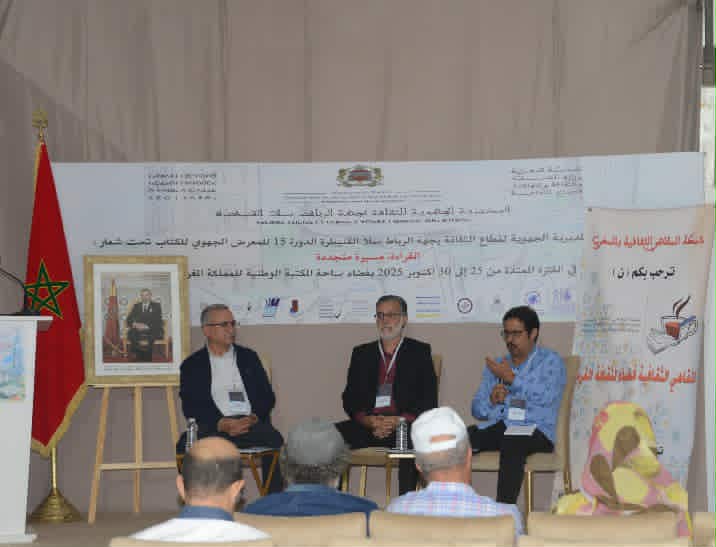 وفي خامس أيام المعرض نظمت الشبكة جلسة توقيع لإصدارات أدبية متميزة لكل من دواوين الشاعر بوعلام حمدوني وكتاب “حشرة القلاس” للكاتب المسرحي كريم لفحل الشرقاوي وقدّم هذه الإصدارات حسن ضاوي، الباحث المتخصص في المسرح، مستعرضاً مضامينها الأدبية والفكرية، ومبرزاً دورها في إثراء المشهد الثقافي والأدبي وأهمية ما تقدمه من قيم فكرية وجمالية للجمهور القرائي.